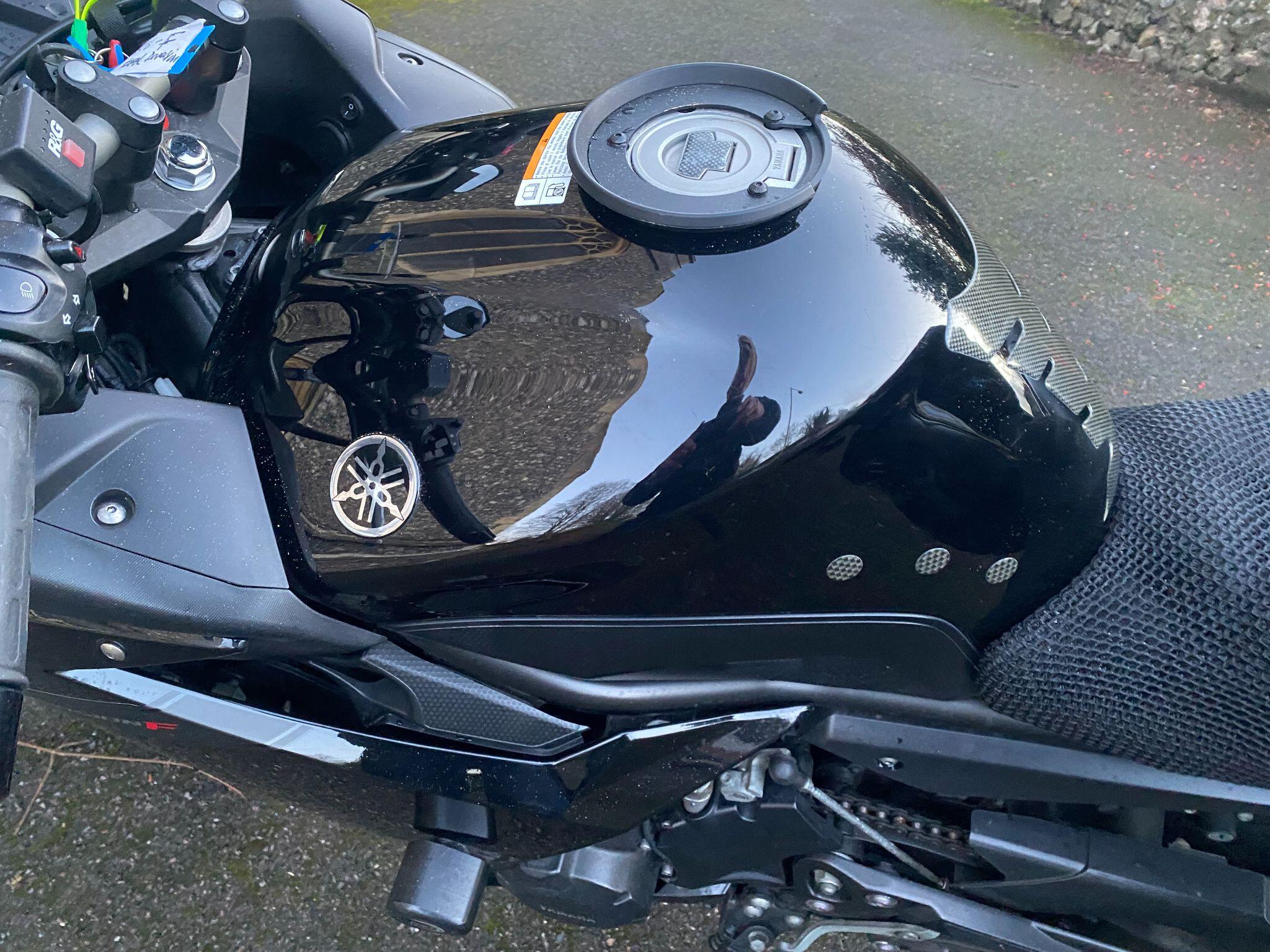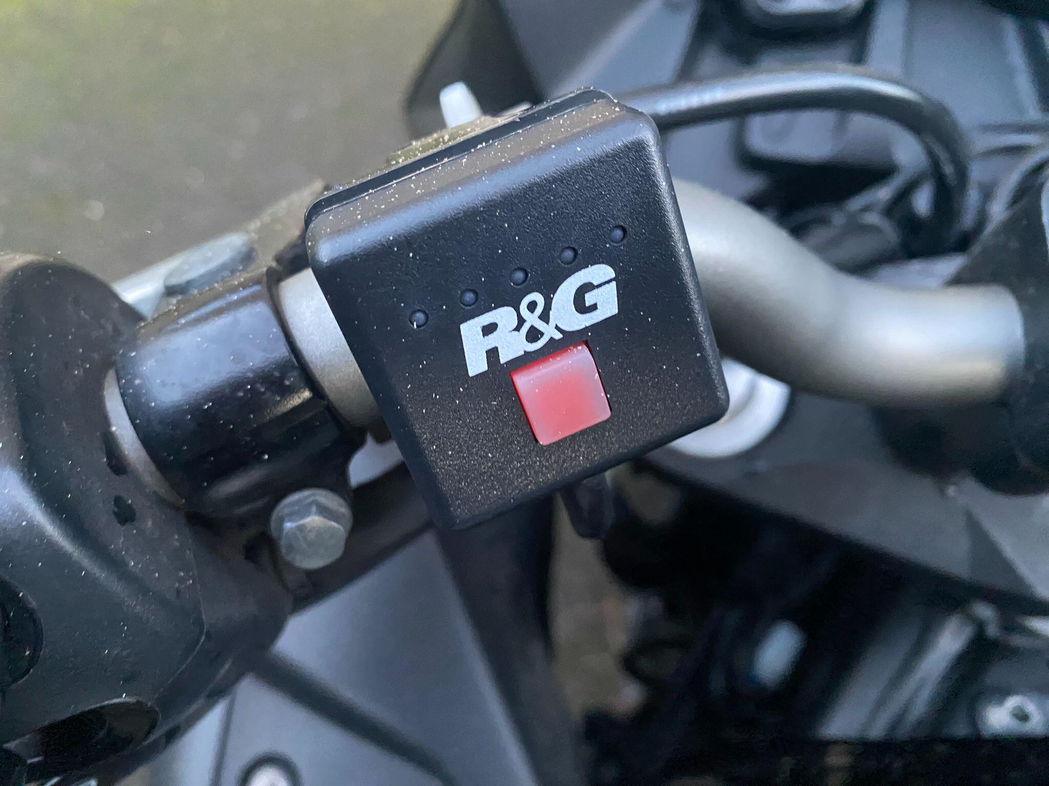 Also has R and G heated grips, clear windscreen with adjustable visor, R and G aero crash bungs, soft grippy seat cover, wheel rim decals and a carbon tank protector .