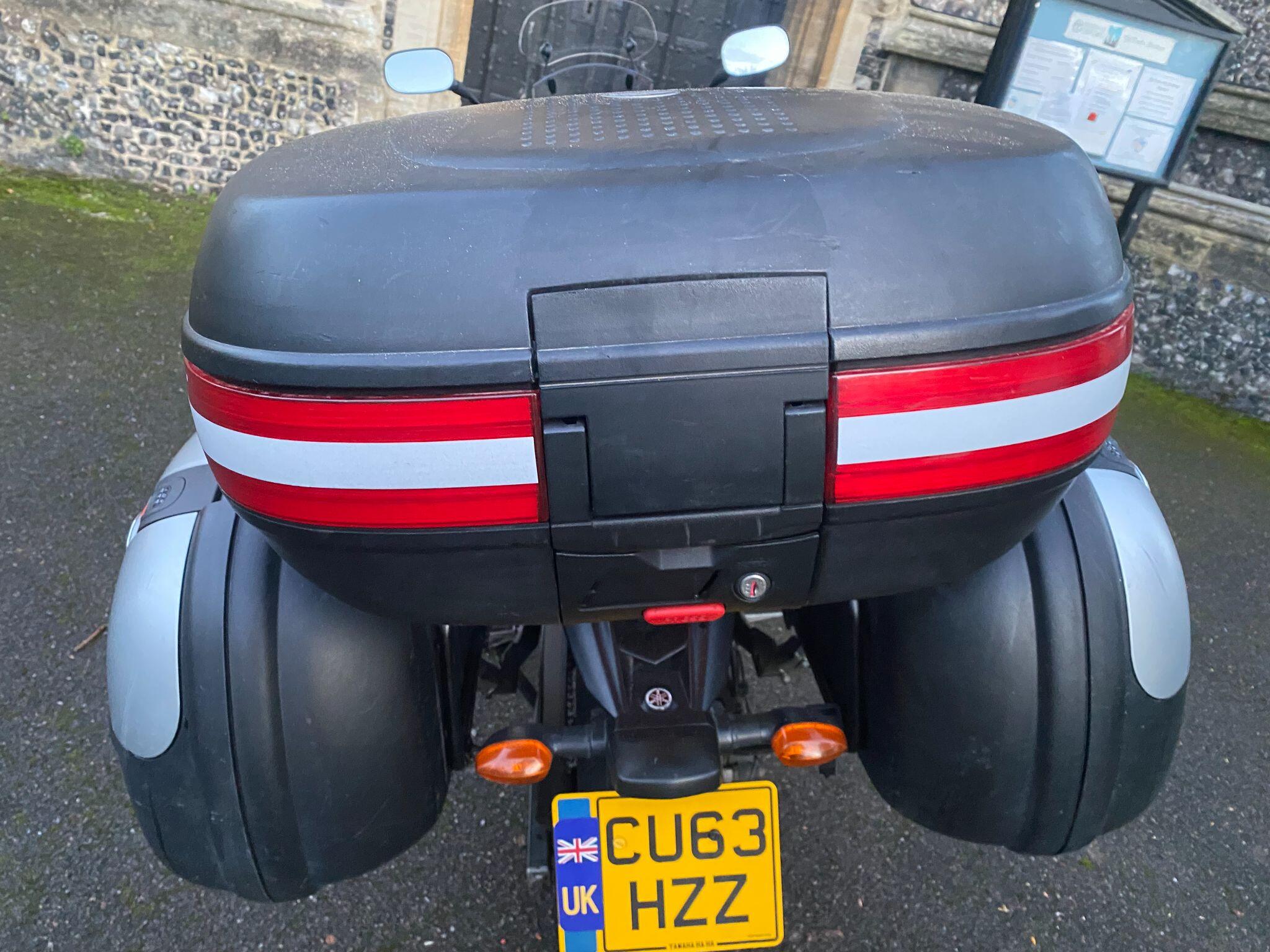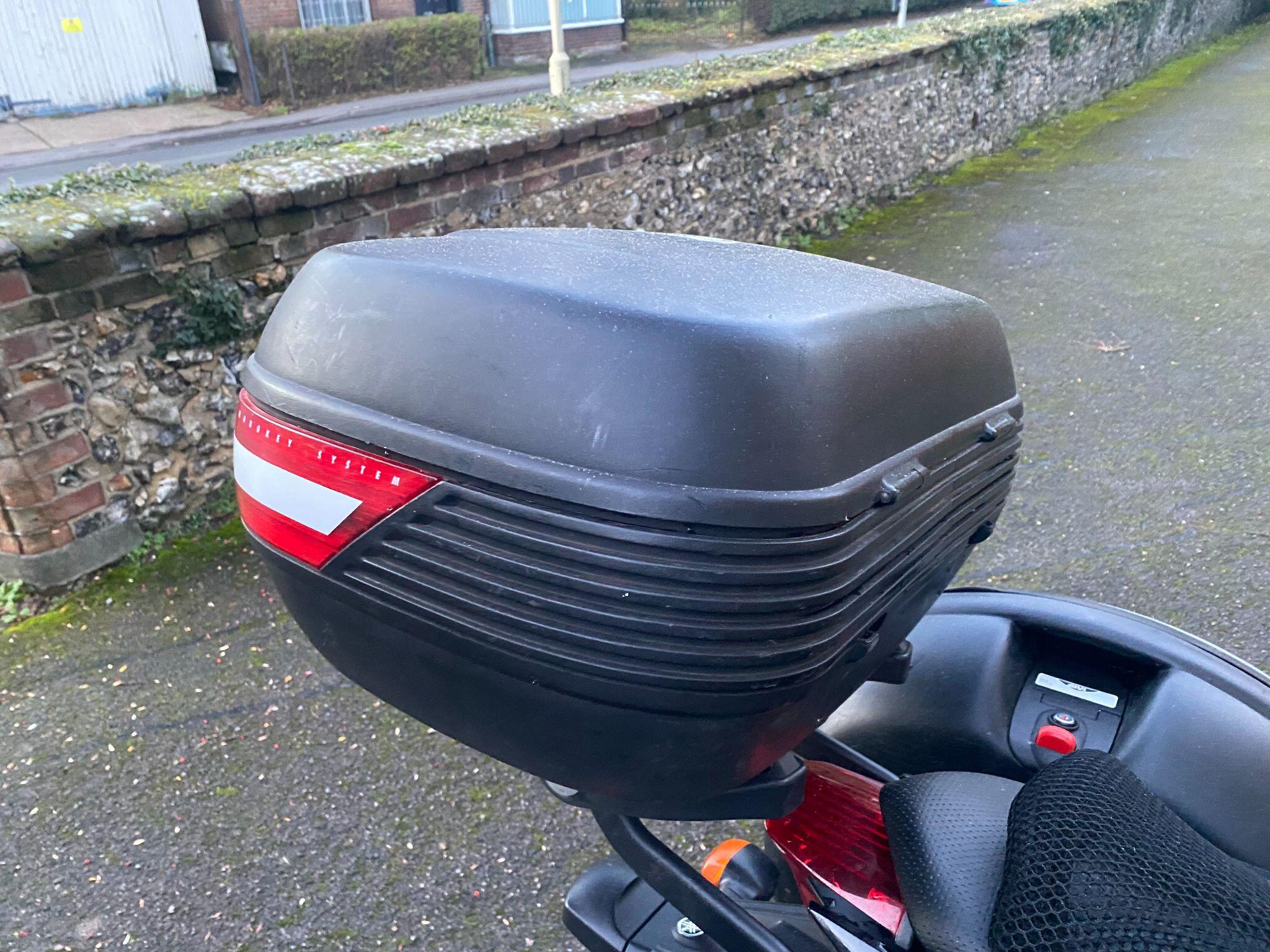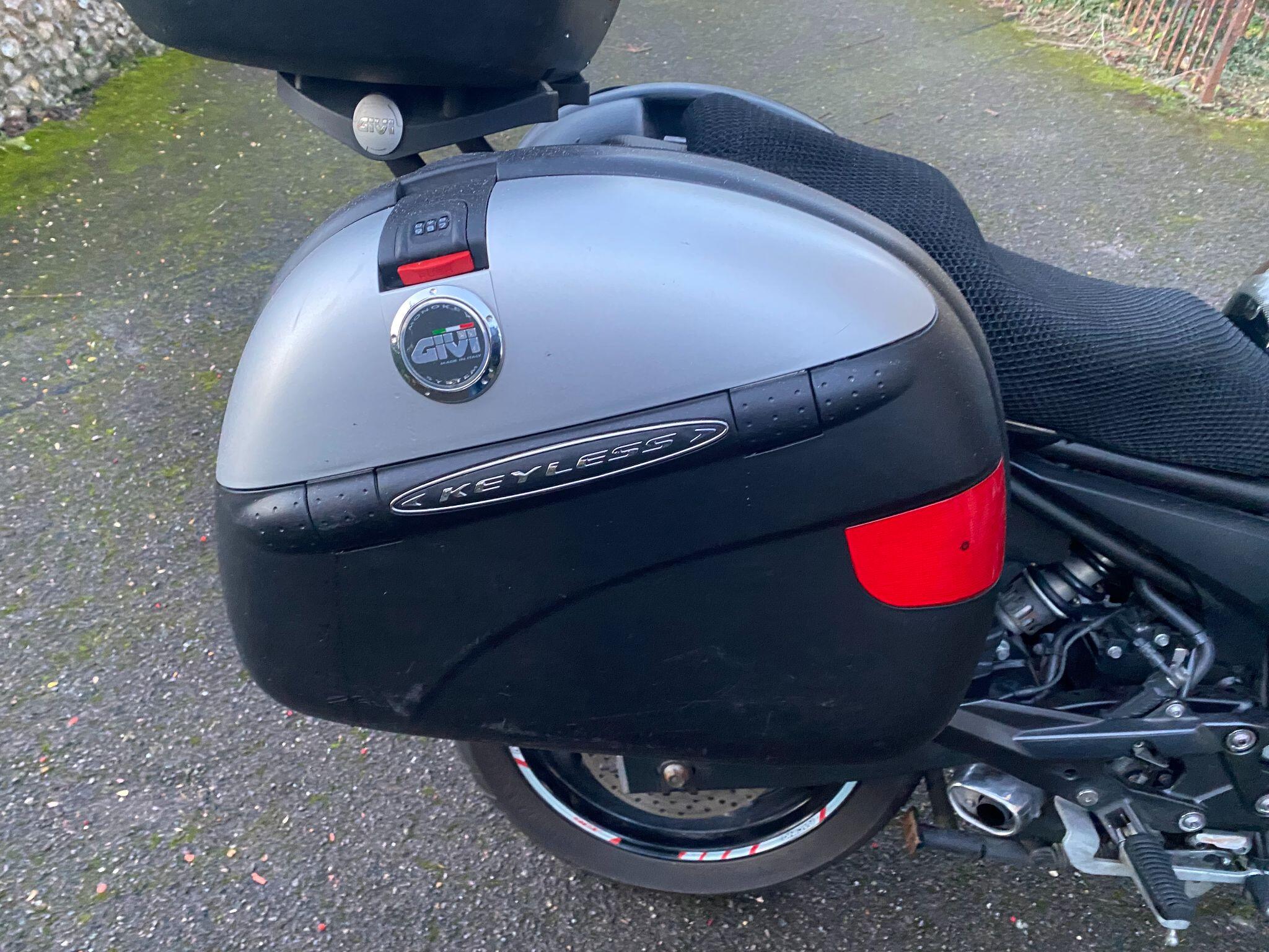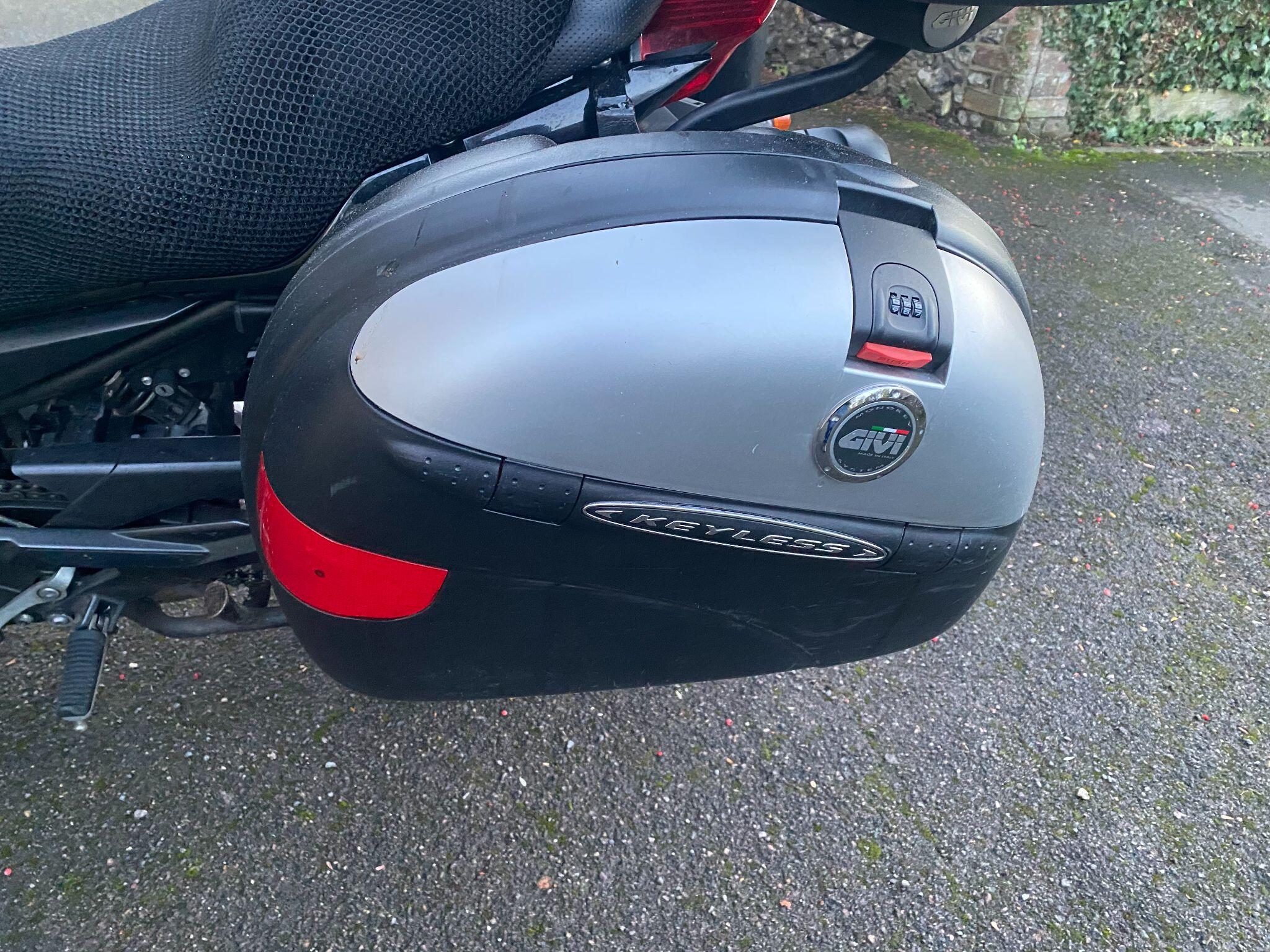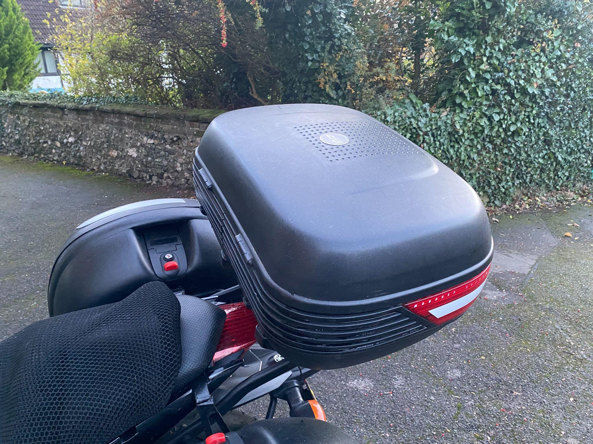 Fitted with a rear rack with a Givi top-box and panniers (that can easily be removed if not required).