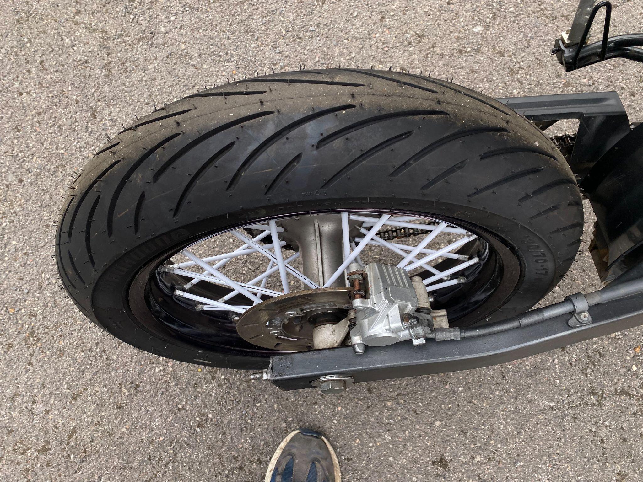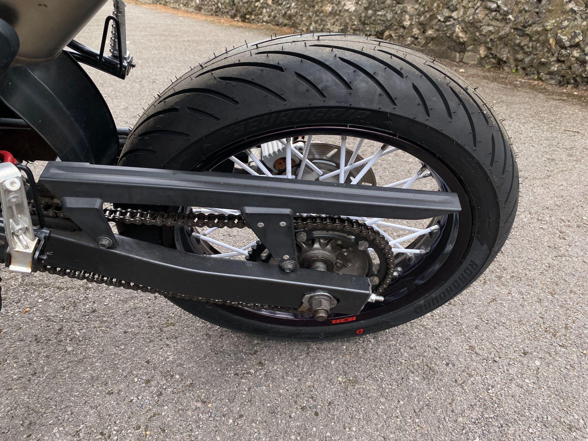 New chain and sprockets and a new pair of tyres just fitted that will require scrubbing in.