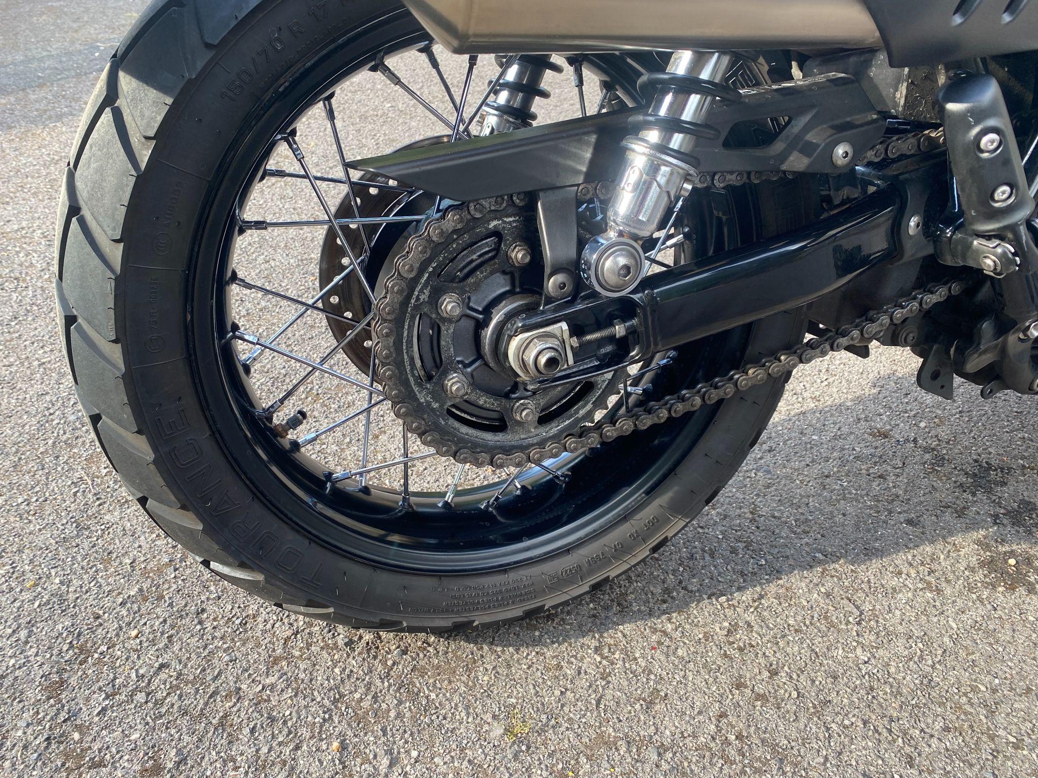 Factory fitted heated grips, locking petrol cap, fork gaiters, knee pads and tank protector.