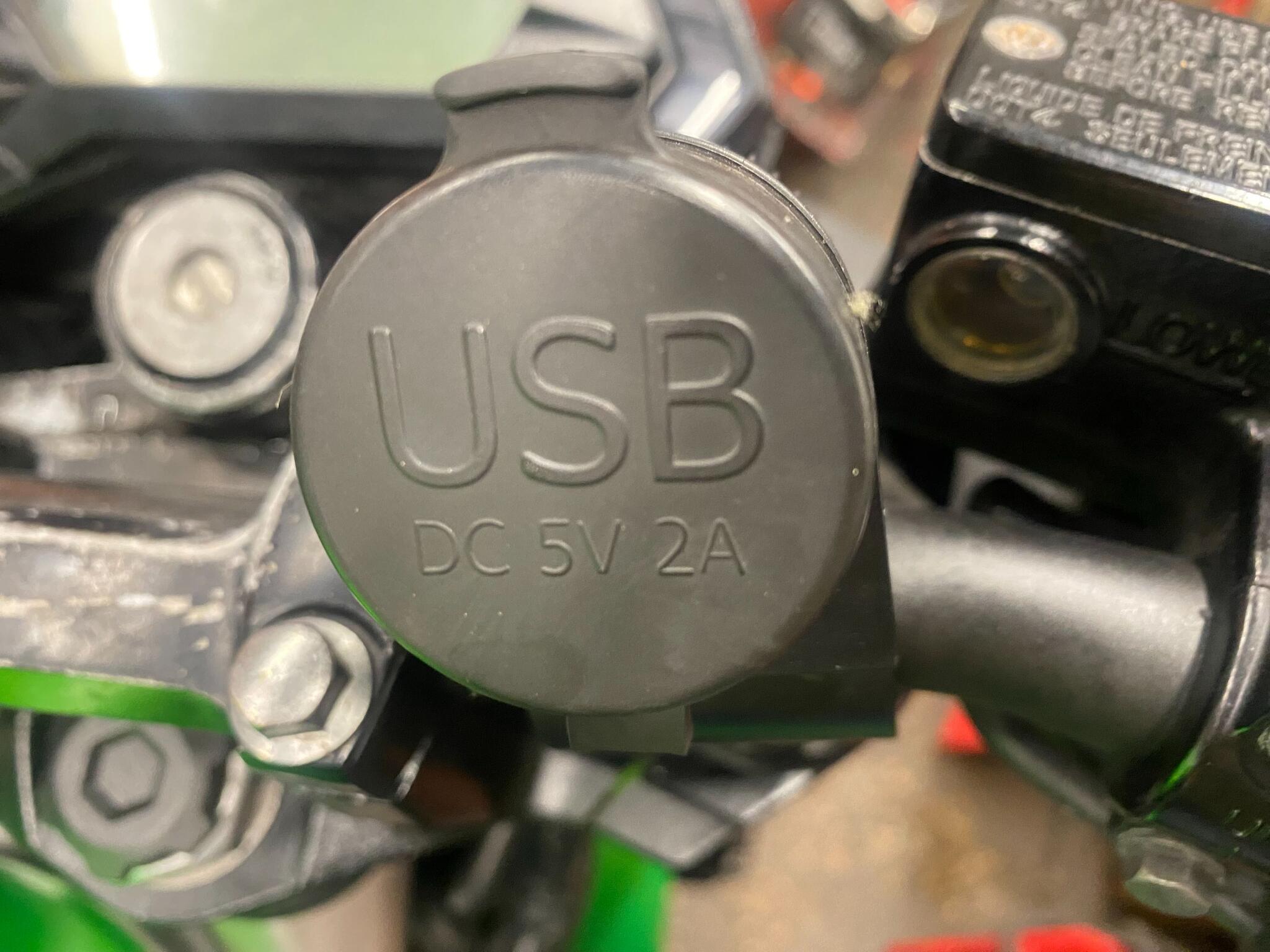 Also a GR Moto carbon tank protector, Evotech radiator guard and a USB charging socket.